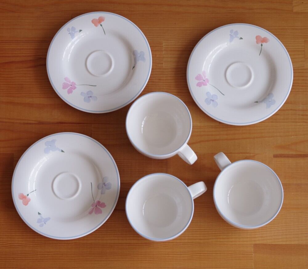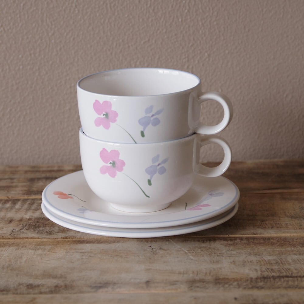 ビンテージ食器 HORNSEA ホーンジー Mistral ミストラル ティーカップ ソーサー 花柄 #210214-2~4 イギリス製 レトロ ピンク ブルー 陶器