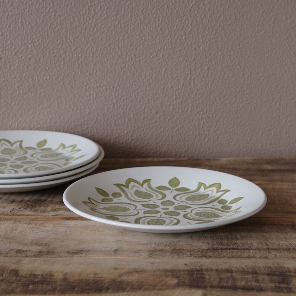 J&G Meakin ミーキン チューリップタイム デザートプレート ケーキ皿 18cm カーキ 花柄 Maidstone Tuliptime #210213-1~4 イギリス ビンテージ アンティーク 食器 陶器 レトロ