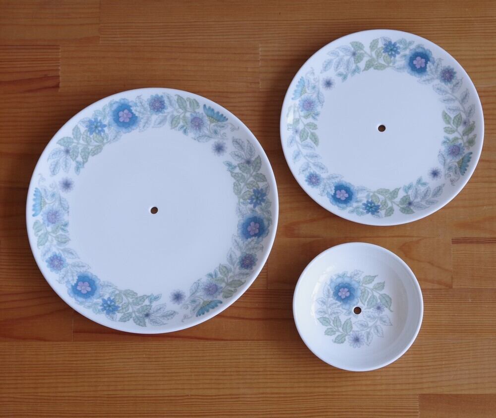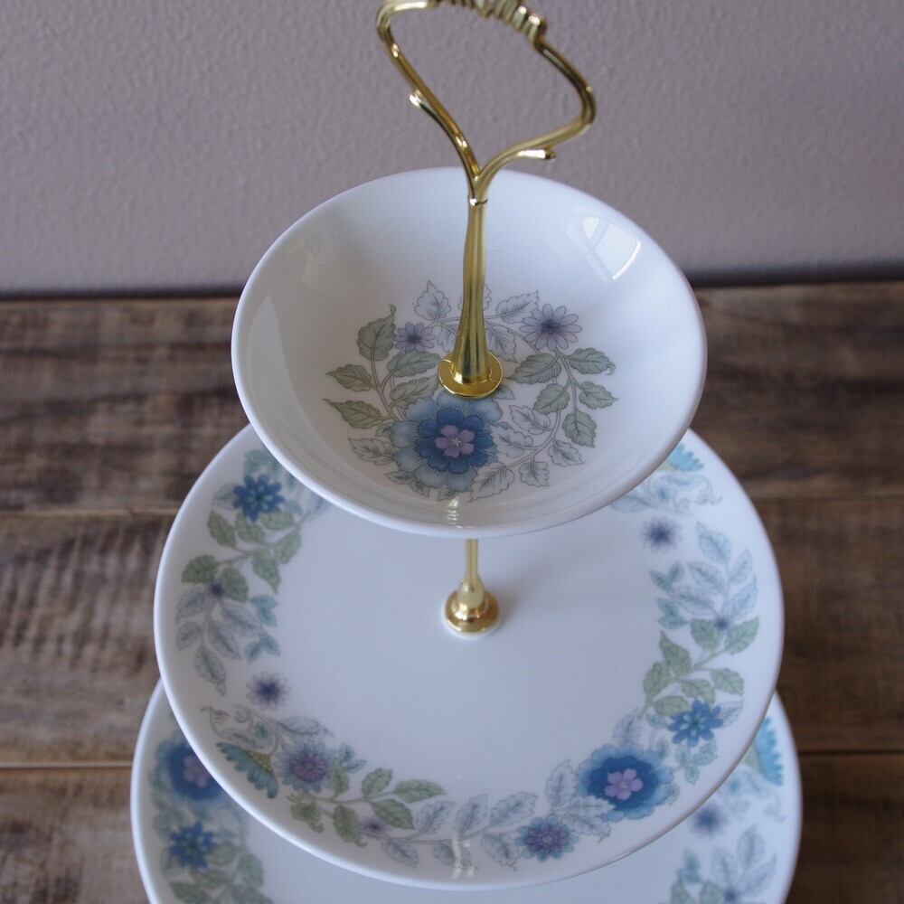 Wedgwood Clementine ウェッジウッド クレメンタイン アフタヌーンティー プレート 3段皿 レトロ ブルー 花柄 #210225-2 ヴィンテージ 食器 陶器 アンティーク 中皿 ティアード