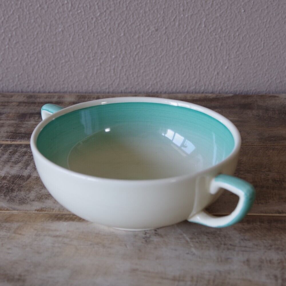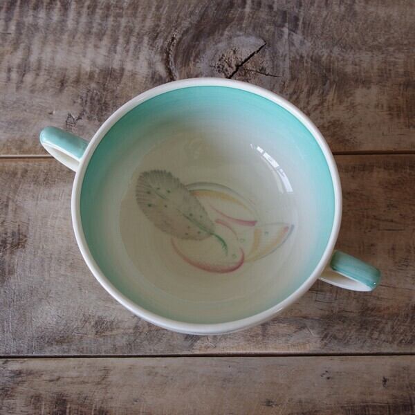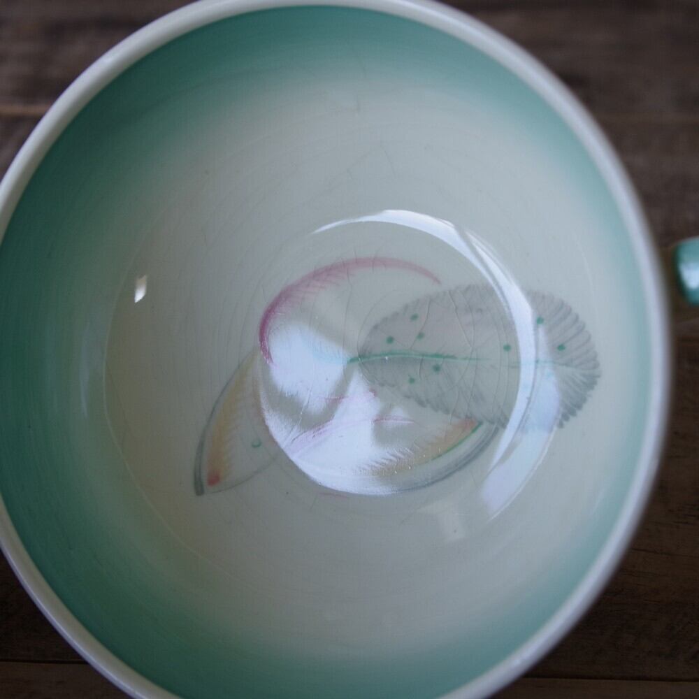 アンティーク 食器 スージークーパー 羽根 模様 グリーン スープカップ ボウル (ソーサーなし) Feather #210227-7 イギリス ヴィンテージ Susie Cooper 陶器 パステルカラー