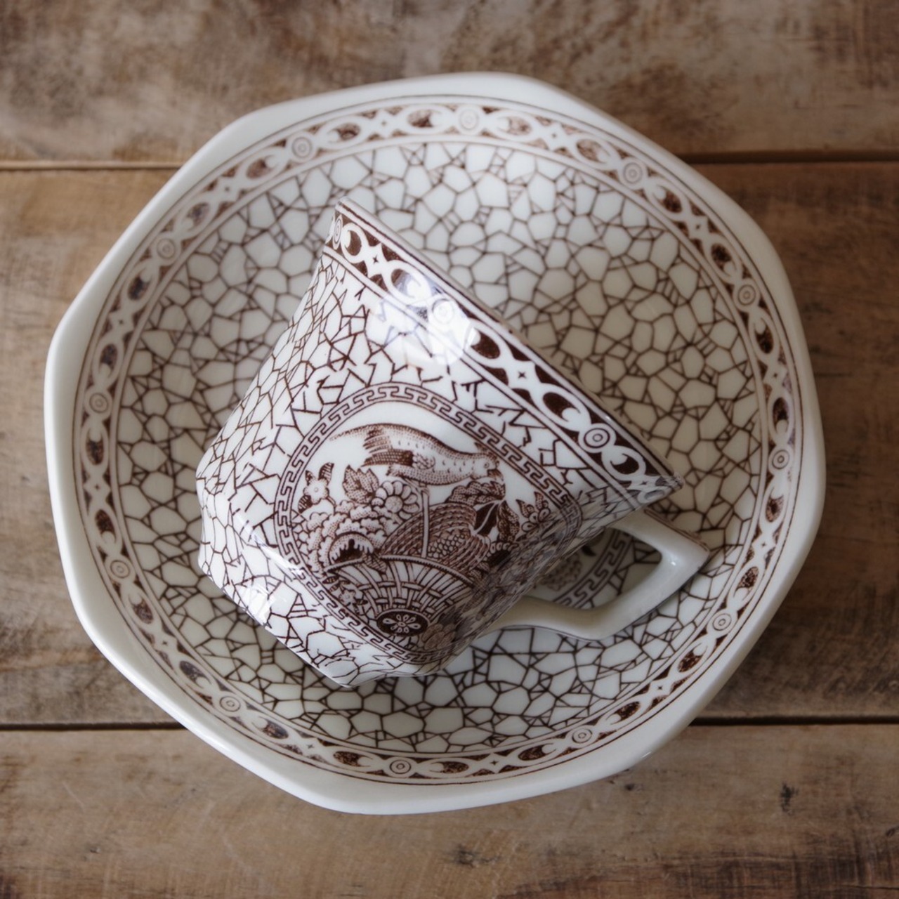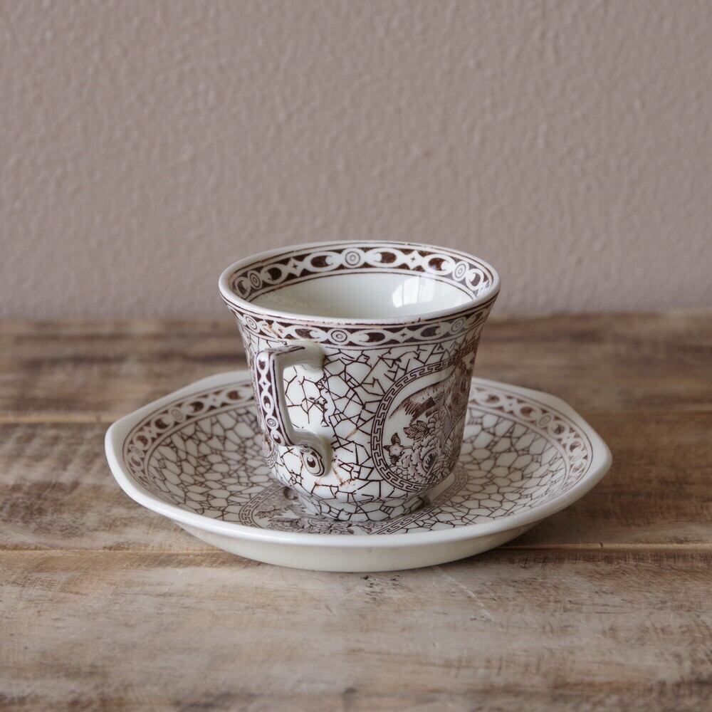 アダムス ブラウン 鳥 花柄 デミタスカップ ソーサー Adams イギリス ヴィンテージ 食器 陶器 #210228-1~5 レトロ Ironstone エスプレッソ 小さめ 雉