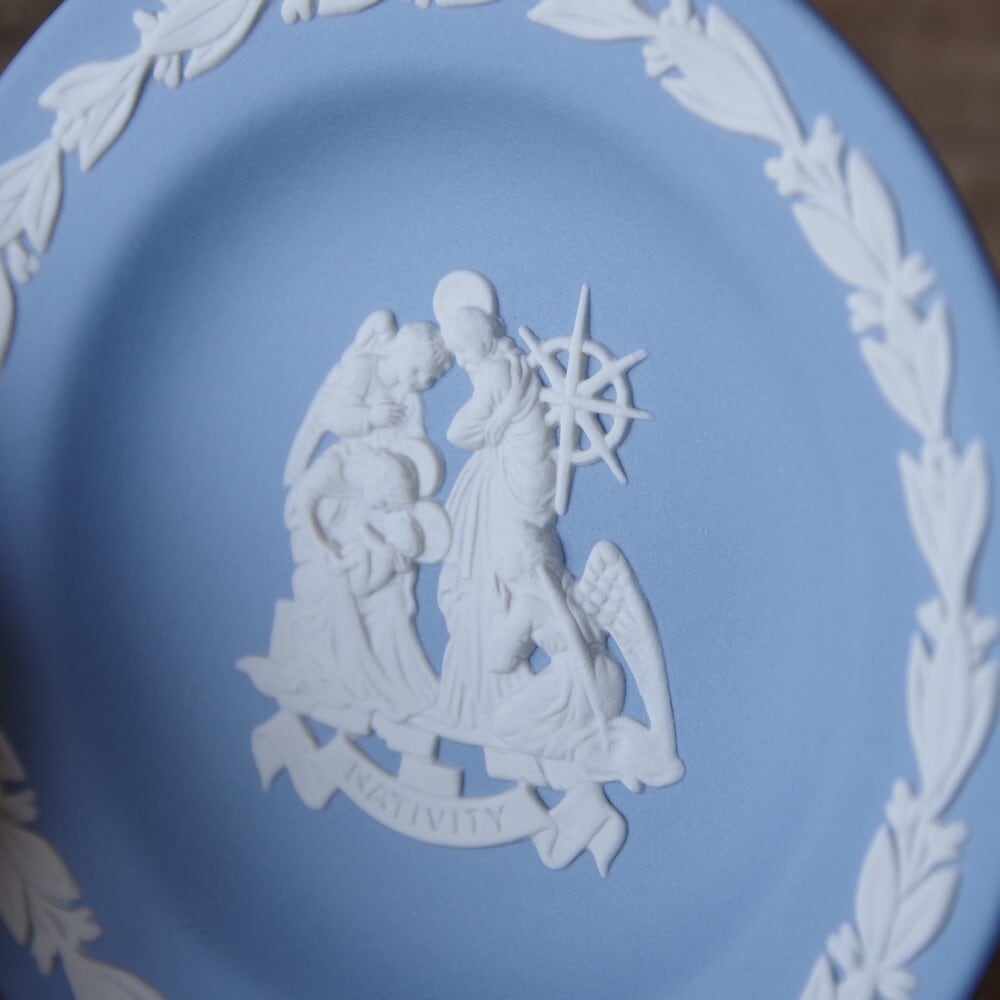 イギリス ウェッジウッド ジャスパーウェア ブルー 水色 トリンケットディッシュ ミニプレート 2003年 クリスマス #210228-1 ヴィンテージ 陶器 Wedgwood Jasper Ware トレイ