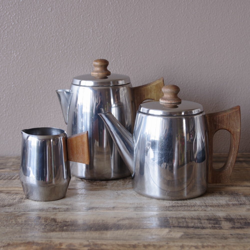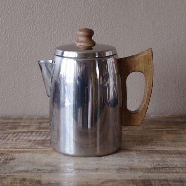 イギリス製 ヴィンテージ 雑貨 ステンレス 木製 ハンドル コーヒーポット #210307-3 レトロ ミッドセンチュリー シルバー モダン