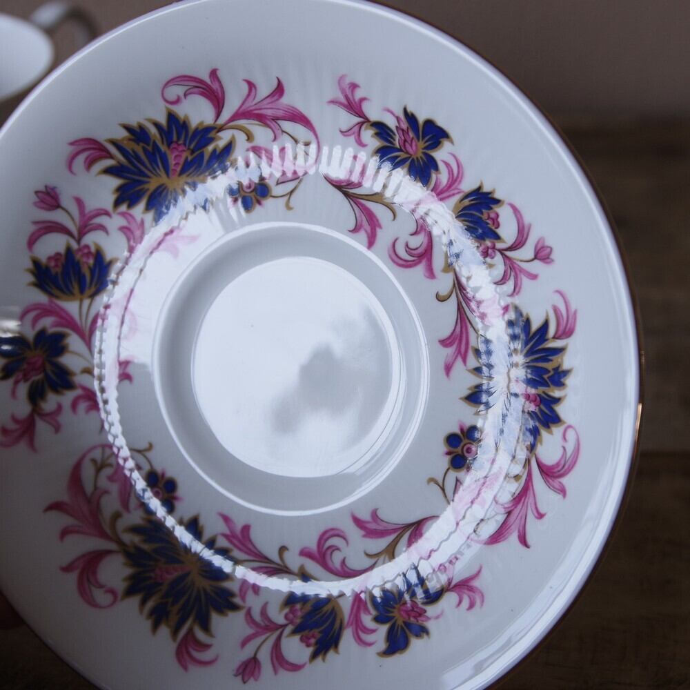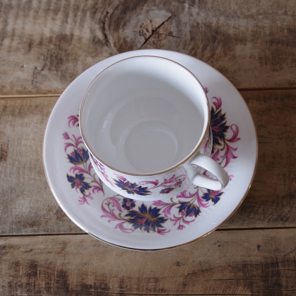 Paragon パラゴン Michelle ミシェル 紫 パープル 花柄 コーヒーカップ ソーサー #210309 イギリス製 ヴィンテージ 食器 アンティーク ゴールド ピンク
