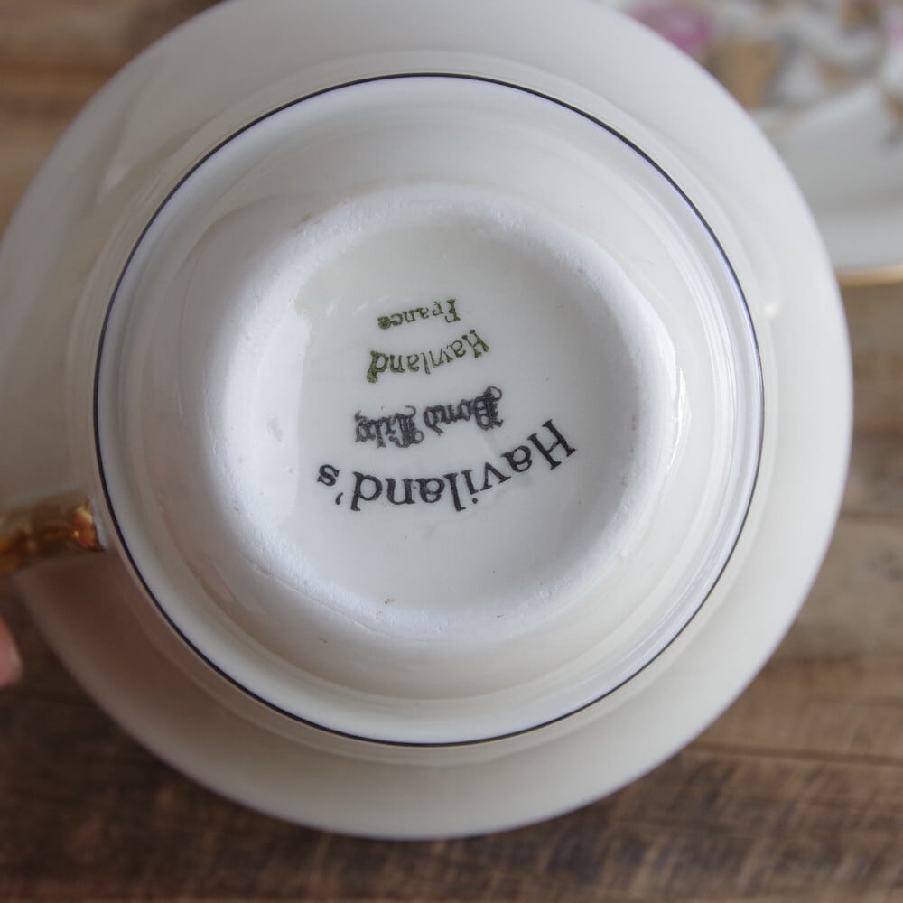 フランス アンティーク 食器 リモージュ アビランド 睡蓮 花柄 Pond Lily ポンドリリー ティーカップ ソーサー #210514-1 Limoges Haviland France ゴールド 陶器 レトロ スイレン