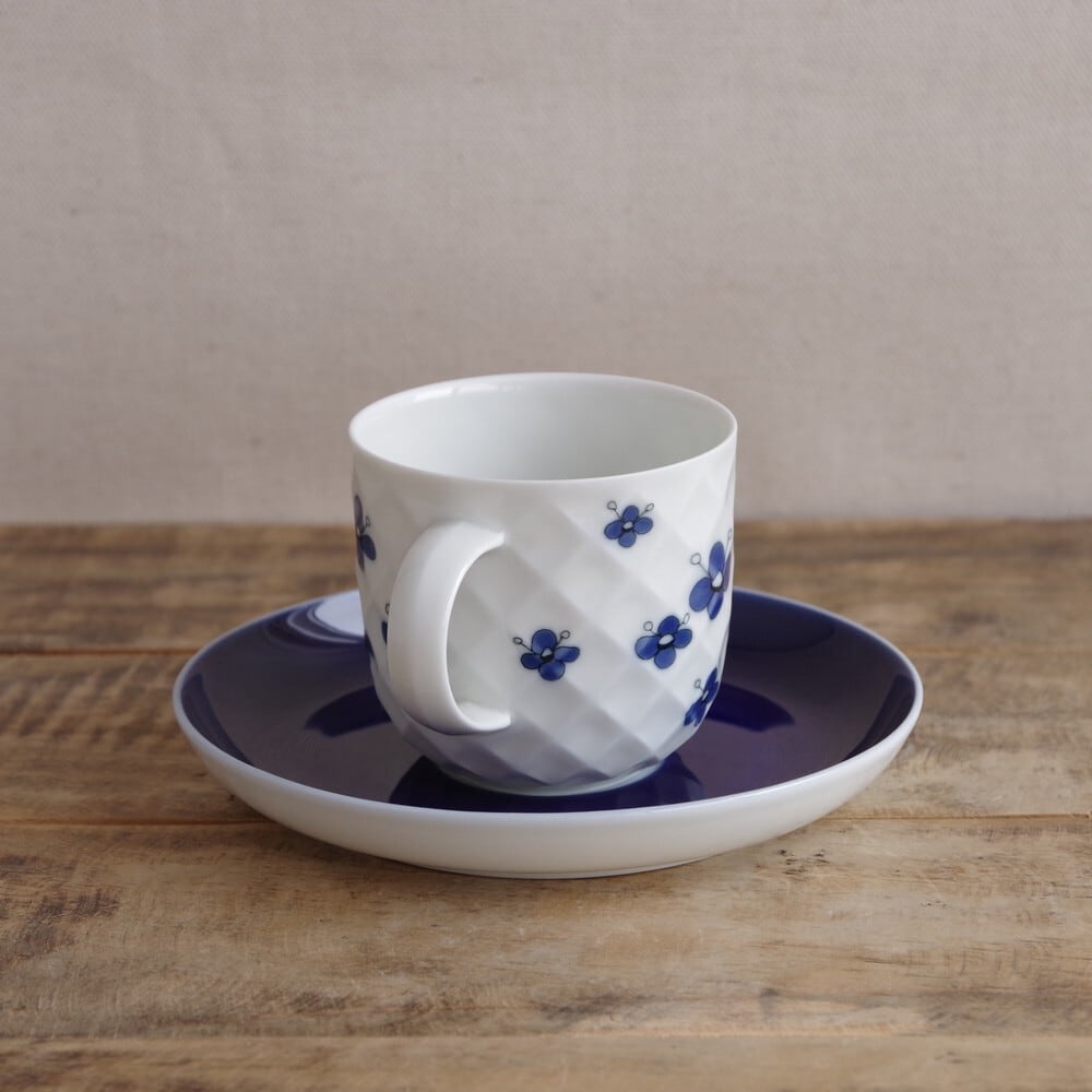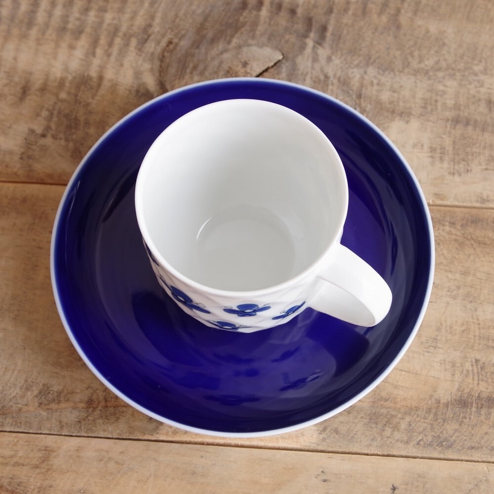 ソーサーは中央を除いて、深いコバルトブルーに塗られています。