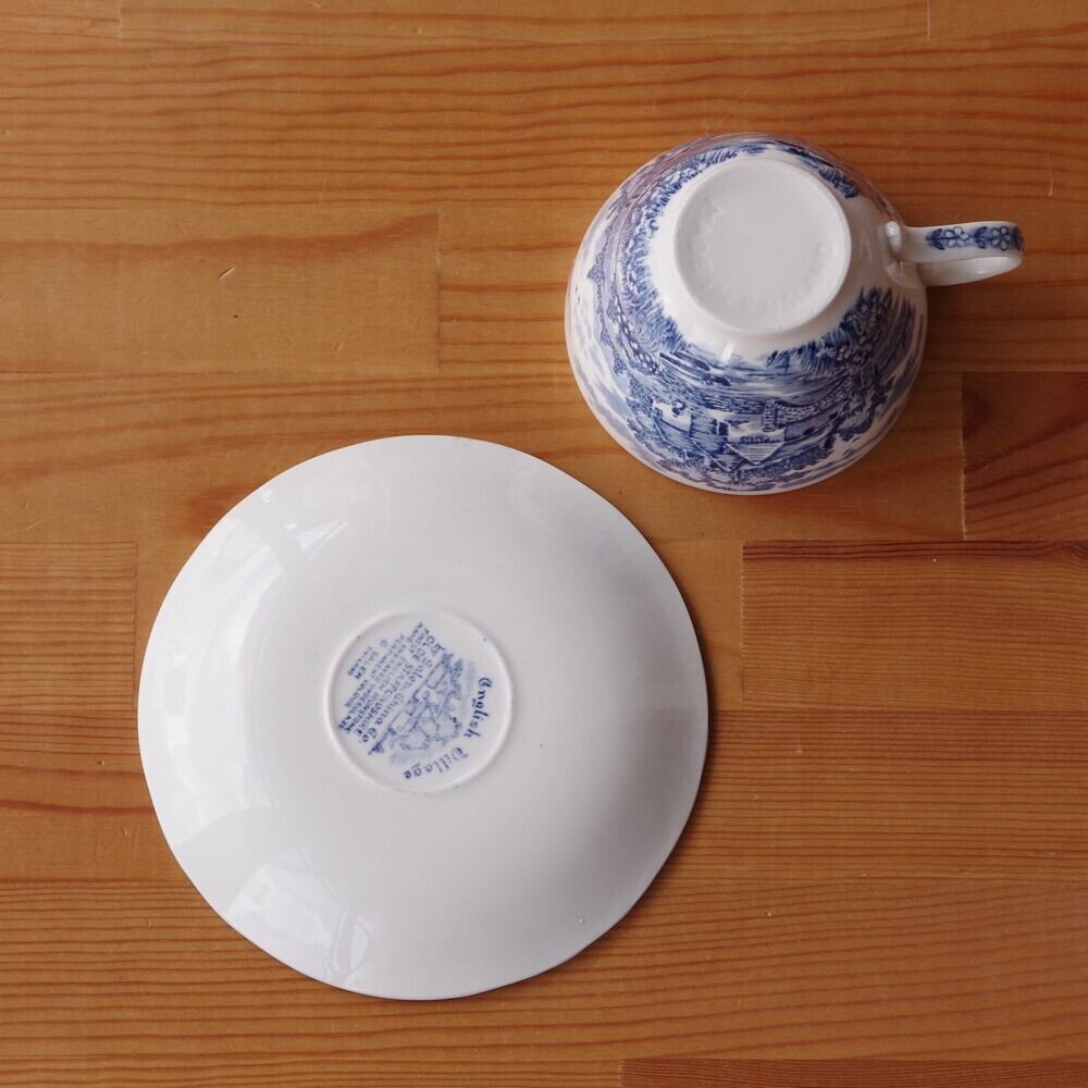 イギリス ヴィンテージ 食器 陶器 セーラム イングリッシュビレッジ ブルー コーヒーカップ ソーサー #210522-2 Salem English Village アンティーク レトロ 村 家 風景