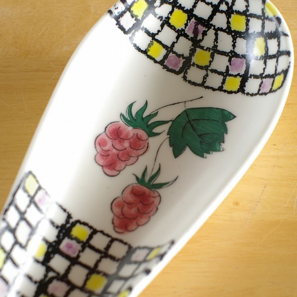 ドイツ製ヴィンテージ雑貨 ベリー柄 なみだ型のプレート トレイ SCHRAMBERG アンティーク 食器 陶器