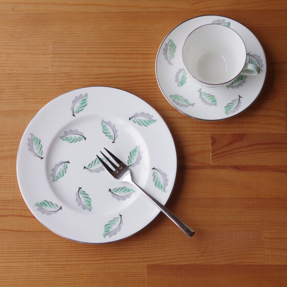 Wedgwood Falling Leaves ウェッジウッド フォーリングリーブス デザートプレート 20cm ケーキ皿 #210620-1~5 ヴィンテージ 食器 陶器 アンティーク レトロ 木の葉 シルバー