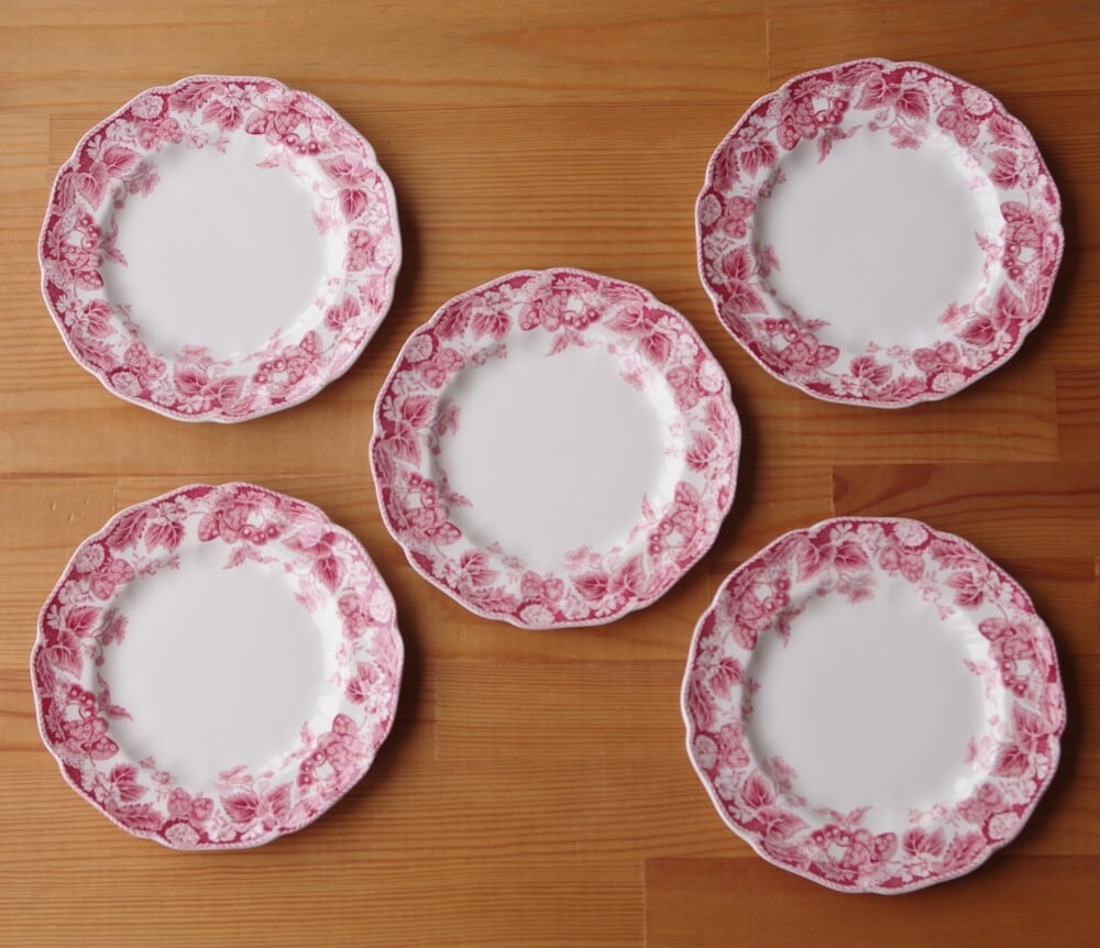 ジョンソンブラザーズ ストロベリーフェア いちご柄 赤 デザートプレート 16cm ケーキ皿 Johnson Brothers Strawberry Fair #210620-1~5 ヴィンテージ アンティーク 食器 陶器 フルーツ柄 イギリス