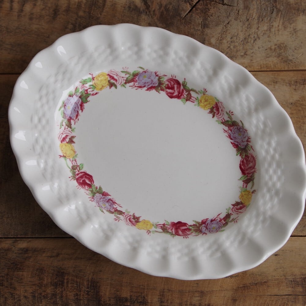 スポード ローズブライアー オーバルプレート 18cm 中皿 Spode Rose Briar 楕円皿 #210705-1 イギリス ビンテージ 食器 陶器 薔薇 ピンク 花柄