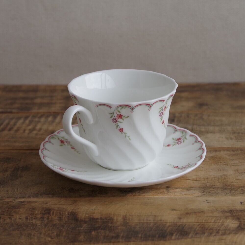 ヴィンテージ食器 ウェッジウッド ピンクガーランド コーヒーカップ ソーサー #210709-1~4 Wedgwood Pink Garland 花柄 レリーフ 陶磁器