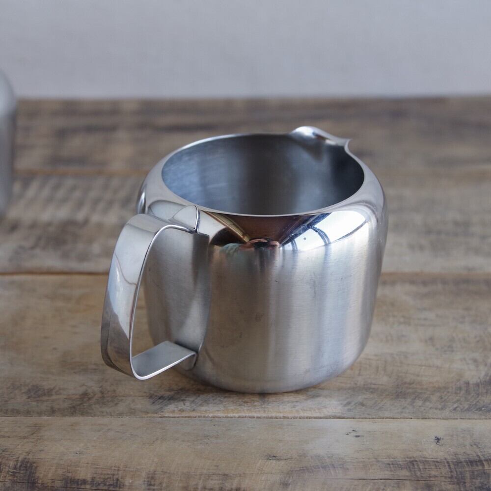 イギリスのステンレスメーカー Olde Hall のシュガーボウルとクリーマーのセットです。
