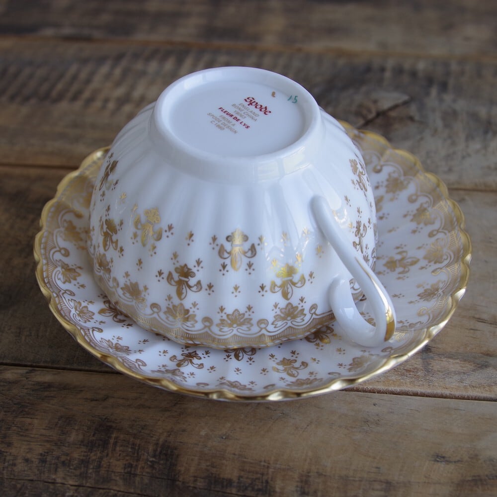 スポード フルール・ド・リス ゴールド ティーカップ ソーサー ヴィンテージ 食器 陶器 #210724-3 アンティーク イギリス Spode Fleur de Lys