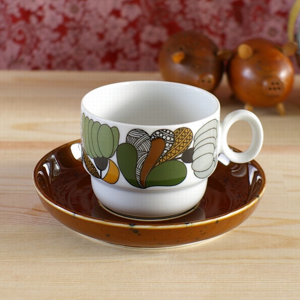 Thomas レトロなブラウン花柄 カップ&ソーサー #161215-2 Hertha Bengtsson ヴィンテージ 陶器 食器 アンティーク 北欧デザイン