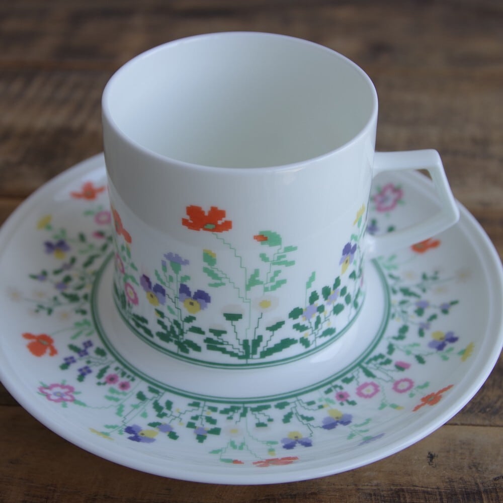 ミカサ プチポワン Mikasa Petit Point 花柄 コーヒーカップ ソーサー #210730-1~6 ヴィンテージ 食器 陶器 昭和レトロ カラフル