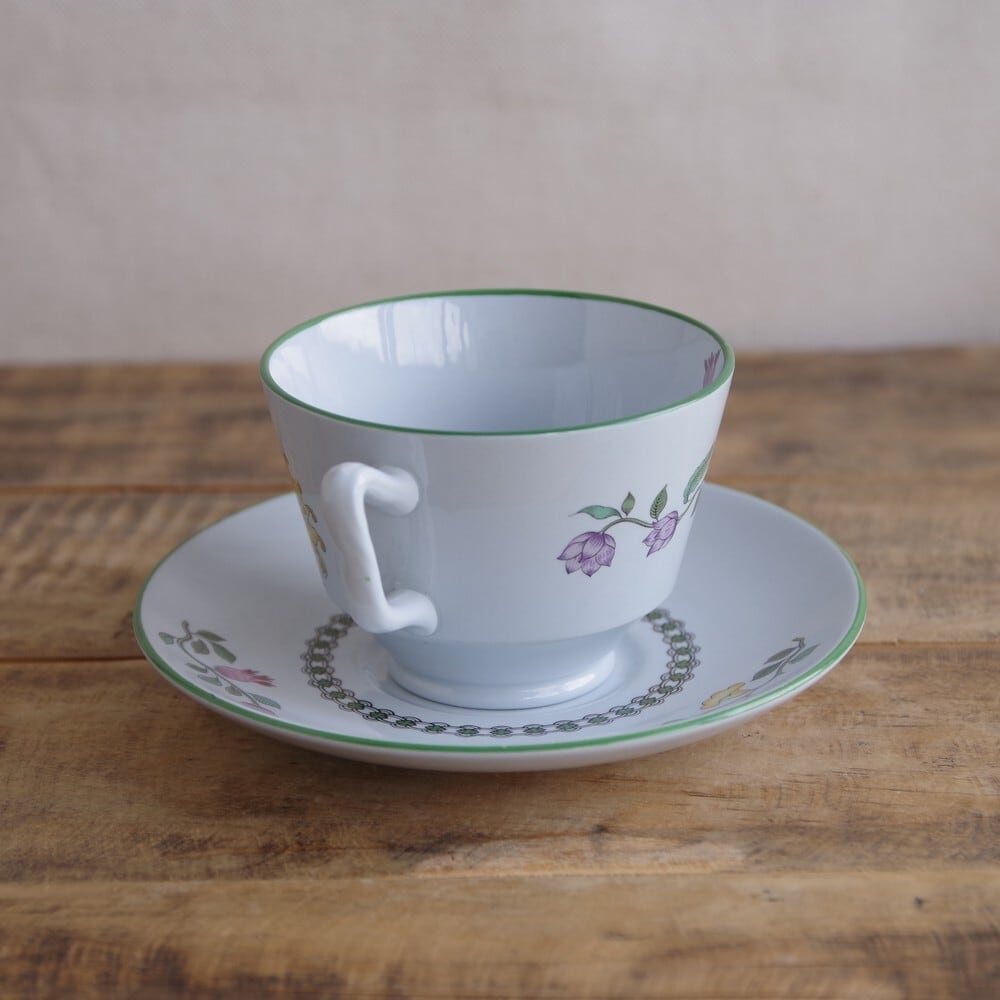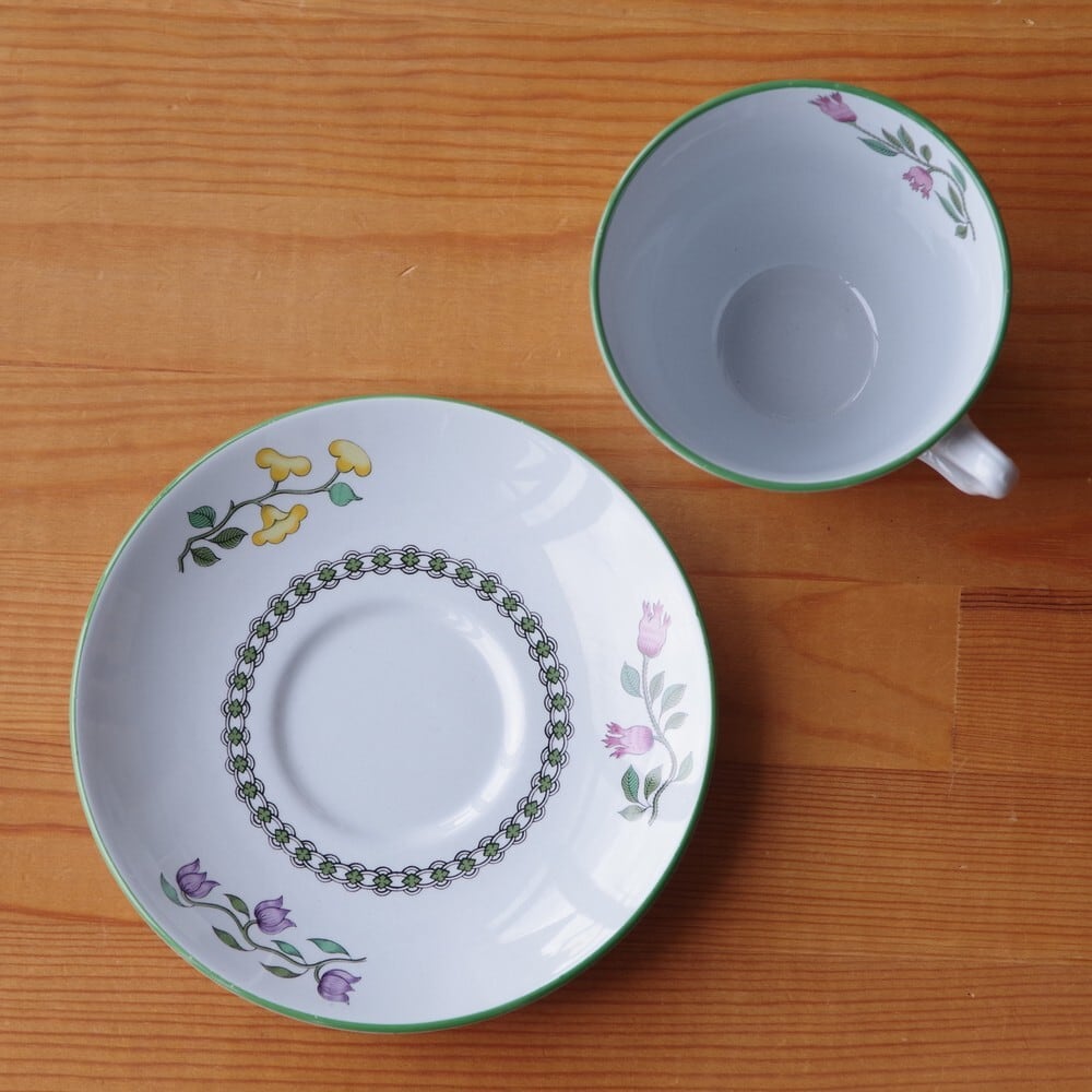 カップの内側にも花の絵柄が入っており、グリーンのふちどりがあります。