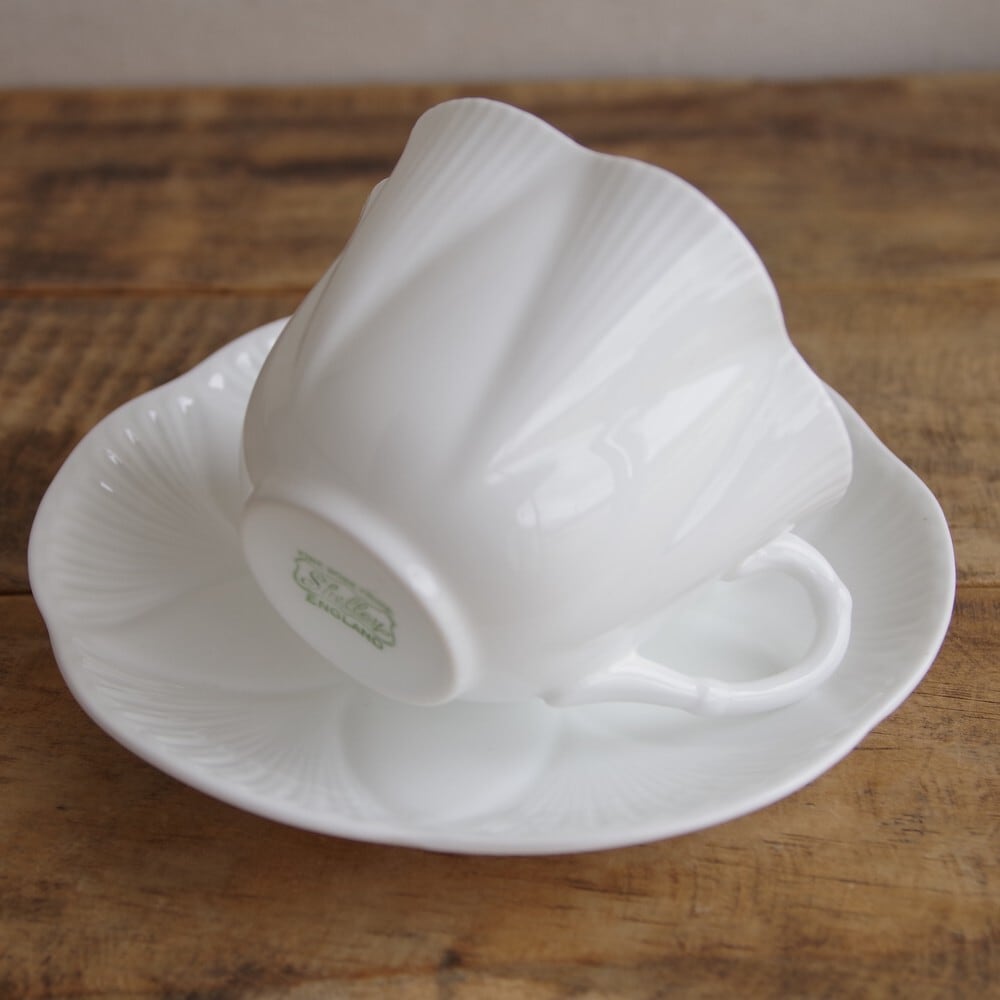 シェリー ディンティー ホワイト ティーカップ ソーサー Shelley Dainty #210815-1 イギリス アンティーク ヴィンテージ 食器 陶磁器 花型