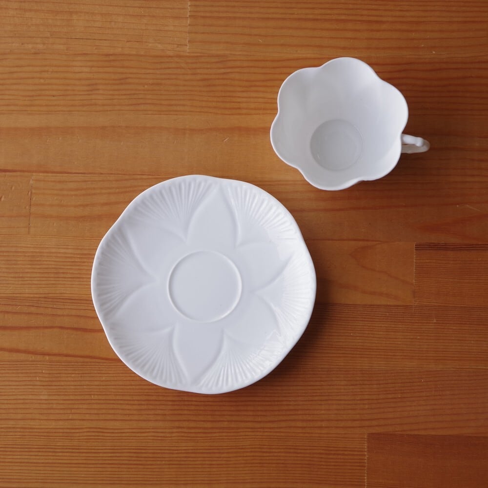 ソーサーも同様に花型をしており、表面に花びらが開いたような形の