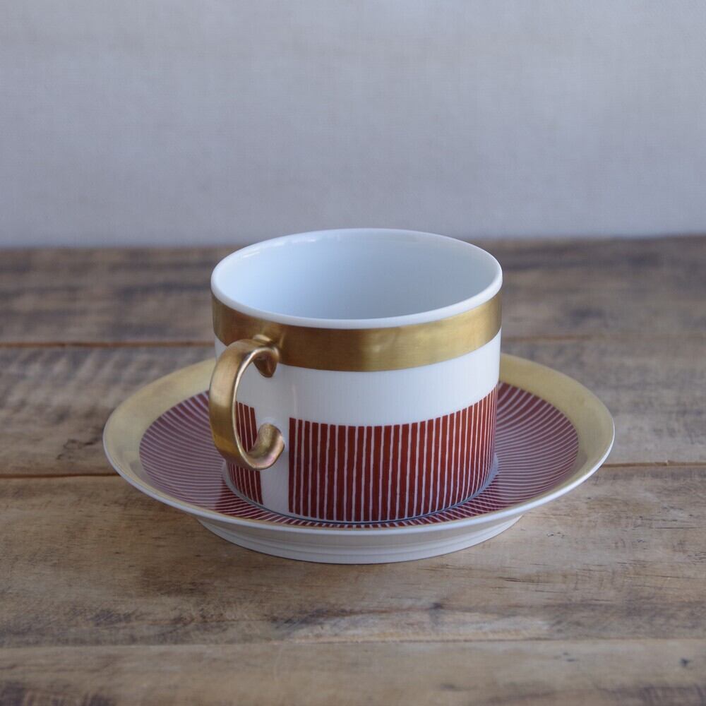 ポーランド製 Karolina ブラウン ゴールド コーヒーカップ ソーサー レトロ ヴィンテージ 食器 陶器 #210906-1,2 Made in Poland カロリーナ モダン