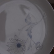 淡いグレーで、マーガレットのような花が可憐に描かれています。