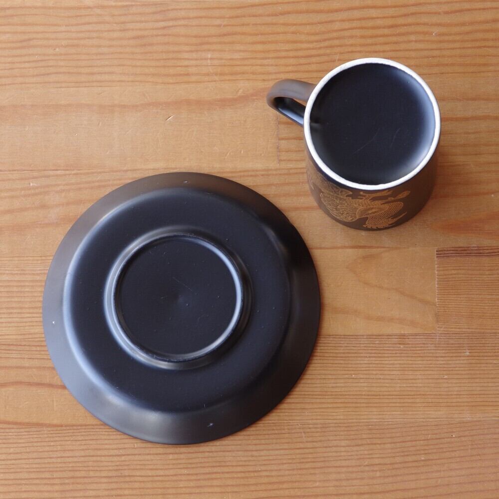 ポートメイリオン フェニックス コーヒーカップ ソーサー ブラック ゴールド 鳥 ヴィンテージ 食器 #211005-6 陶器 レトロ Portmeirion Phoenix モダン 黒 ポートメリオン カップ&ソーサー