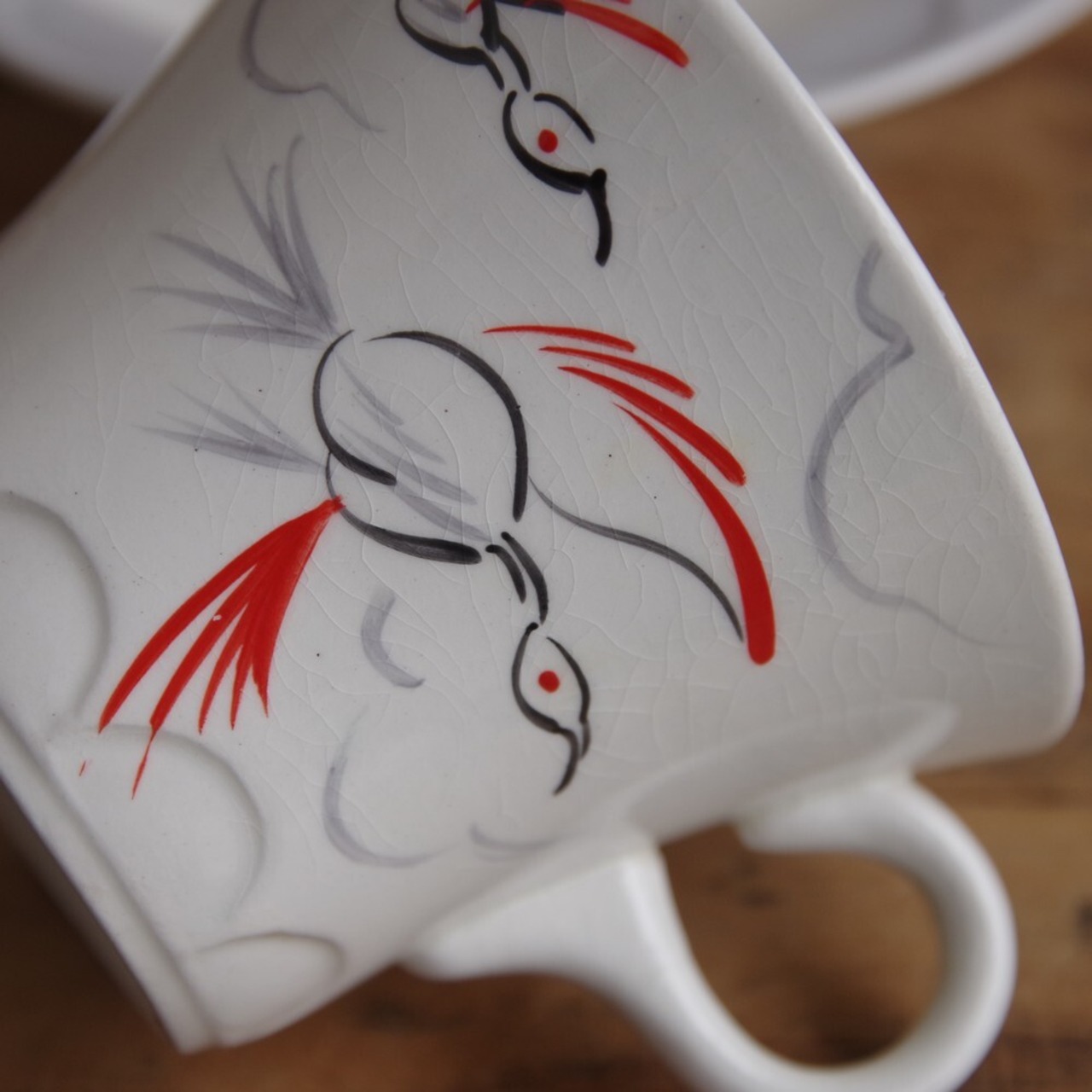 バラッツ Barratt’s Staffordshire 鶴 手描き 鳥 コーヒーカップ ソーサー レトロ アンティーク食器#211104-1 イギリス バラット つる ヴィンテージ 陶器