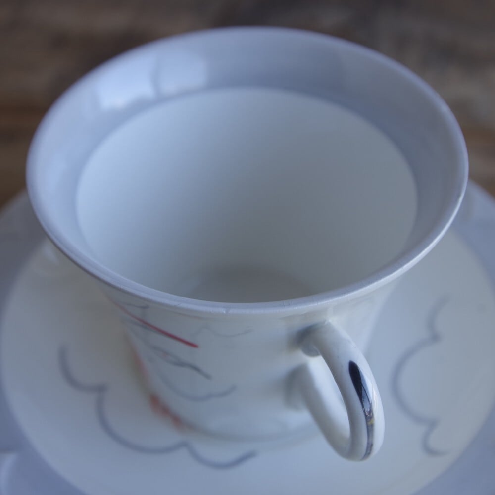 また、カップふちやソーサーふちに何か所か、製造時からある地の陶器のカケがあります。