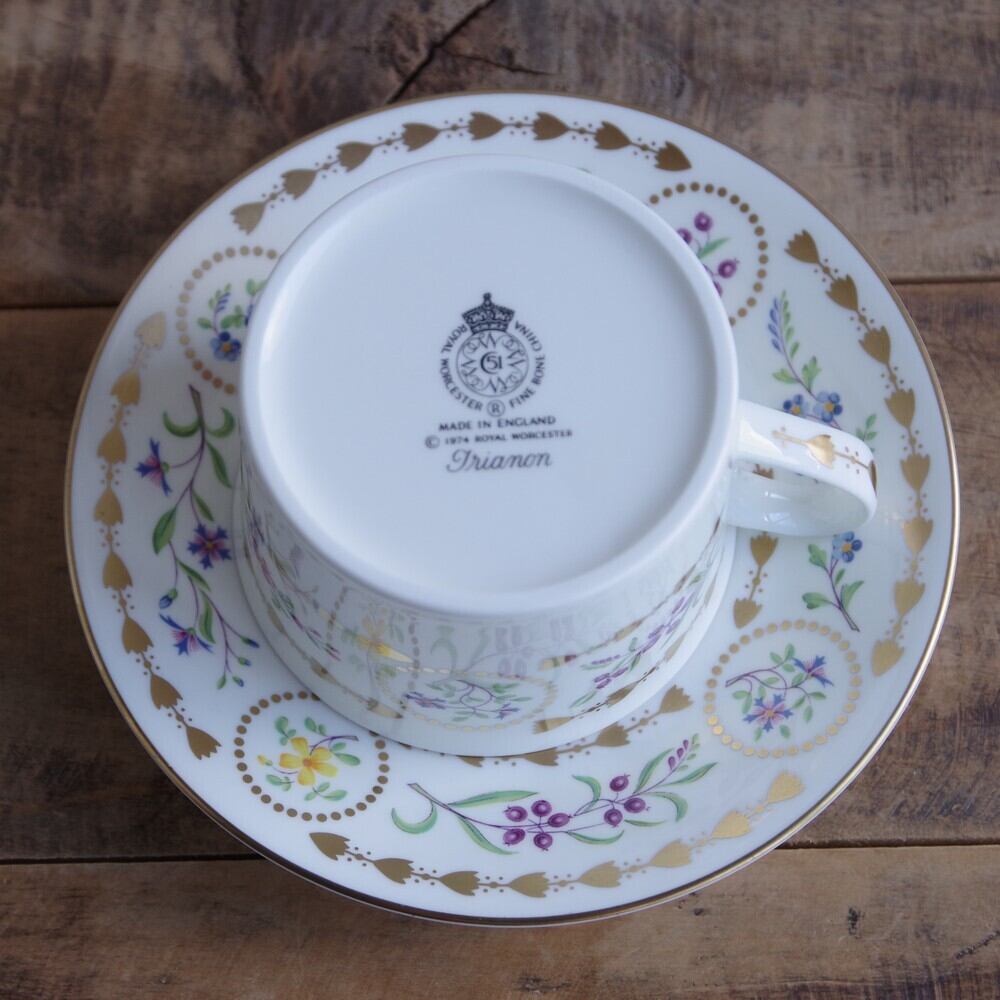 ロイヤルウースター トリアノン カップ ソーサー ゴールド 花柄 Royal Worcester #211127-1~6 イギリス ヴィンテージ 食器 陶磁器 レトロ