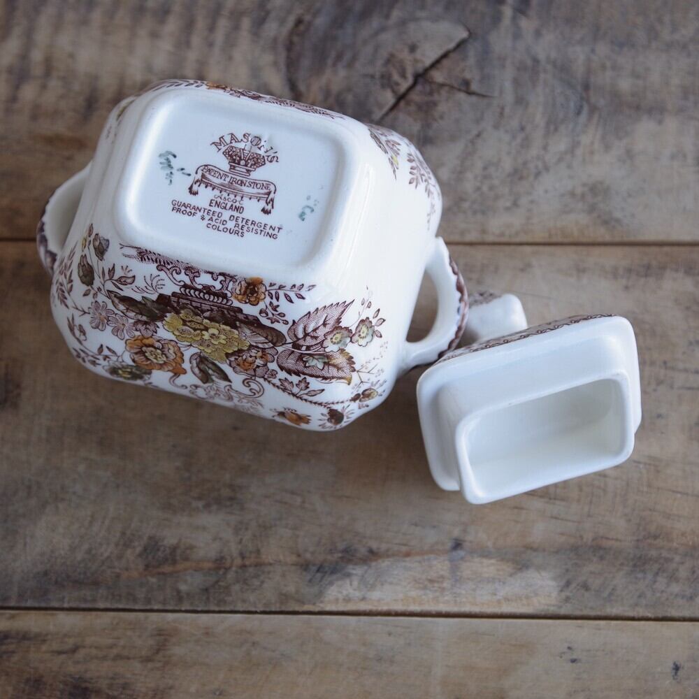 レトロ アンティーク ブラウン 蝶 花メイソンズ アスコット シュガーポット Mason's Ascot イギリス ヴィンテージ 食器 陶器 #211128