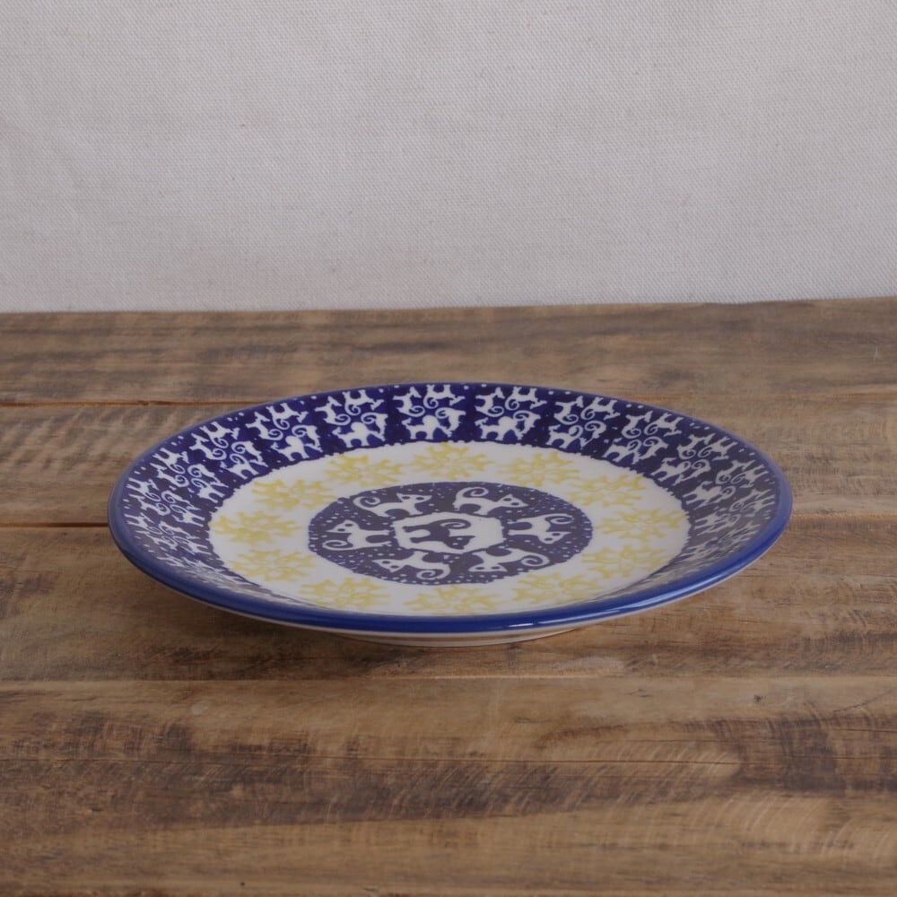 【再入荷】【新品】 ポーリッシュポタリー ポーランド 食器 プレート 中皿 17cm 子猫 ねこ ネイビー 黄色 T130-ALC69 ボレスワヴィエツ 陶器 Boleslawiec レトロポップ アニマル