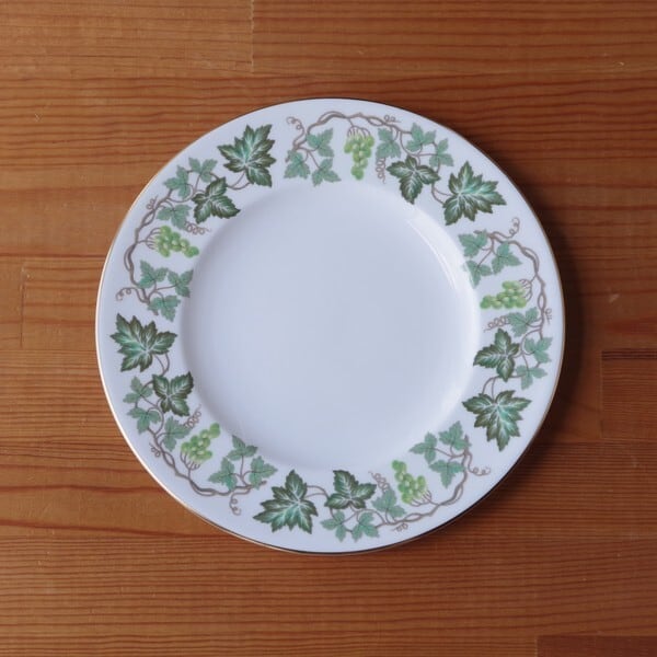グリーン色を基調に、リム部分にブドウの絵柄が入った