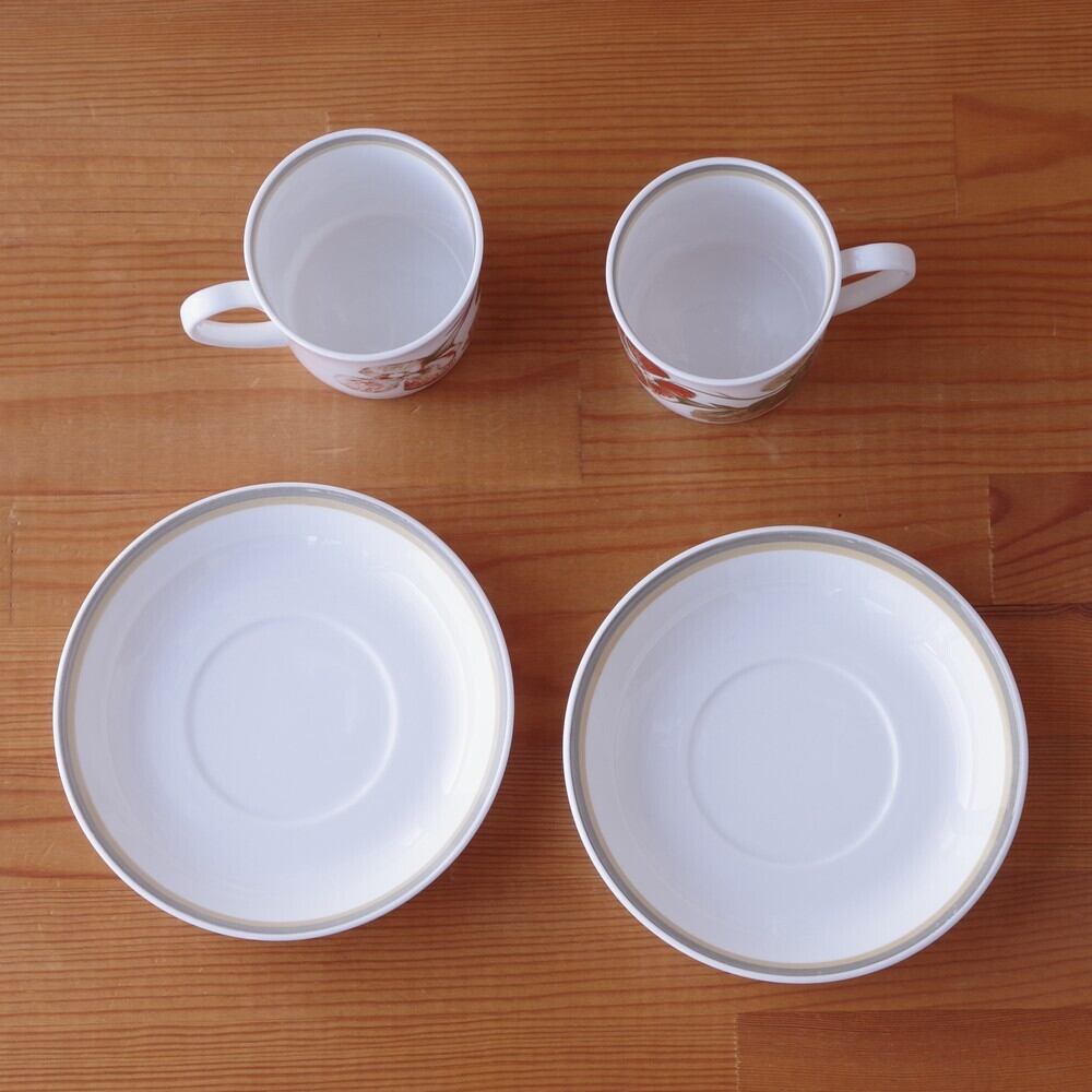 カップ側面を横長に使って、赤っぽい花の絵柄が入っています。