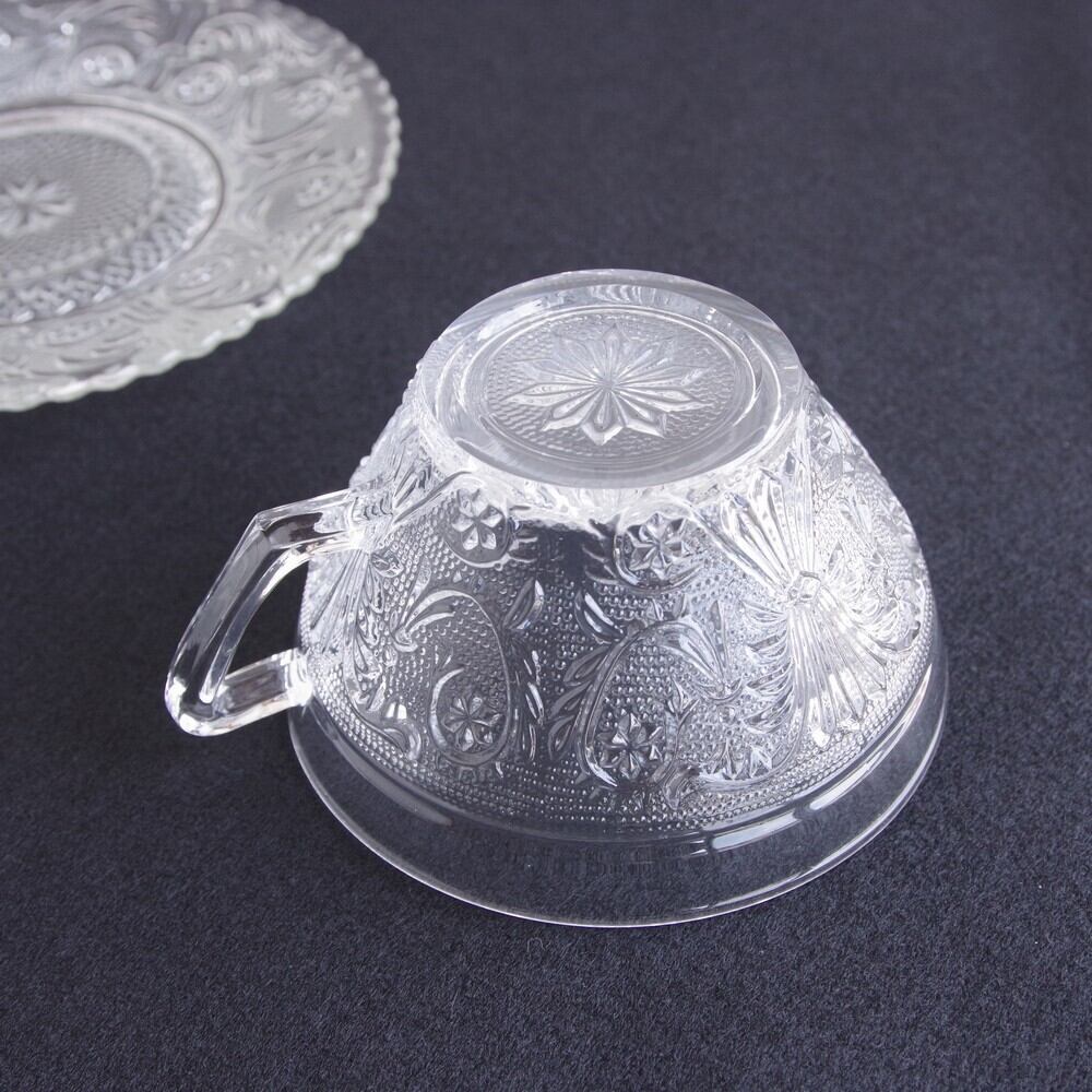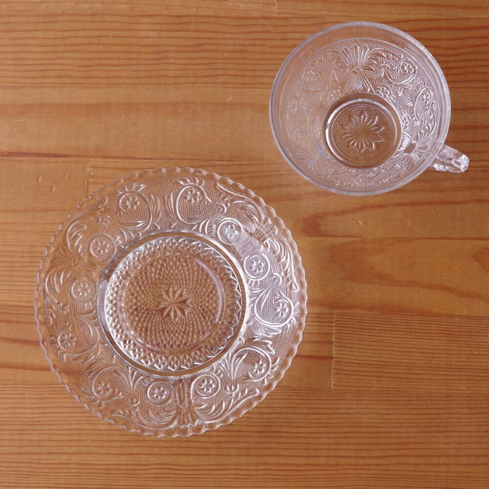 ダンカンミラー グラス サンドウィッチ ティーカップ ソーサー プレスガラス レリーフ クリア #220128-1 Duncan Miller Sandwich レトロ アメリカ製 ヴィンテージ 食器