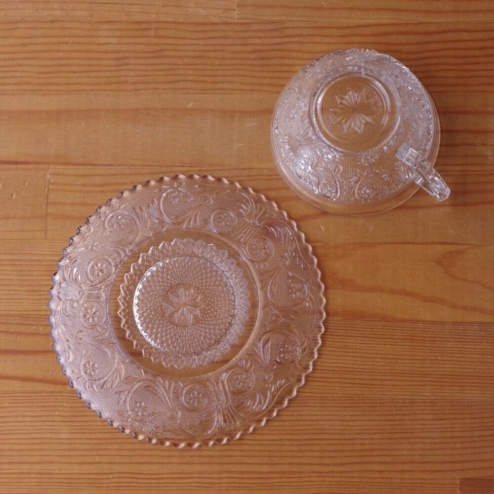 ダンカンミラー グラス サンドウィッチ ティーカップ ソーサー プレスガラス レリーフ クリア #220128-2 Duncan Miller Sandwich レトロ アメリカ製 ヴィンテージ 食器