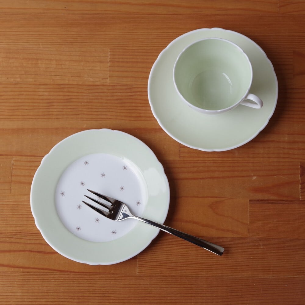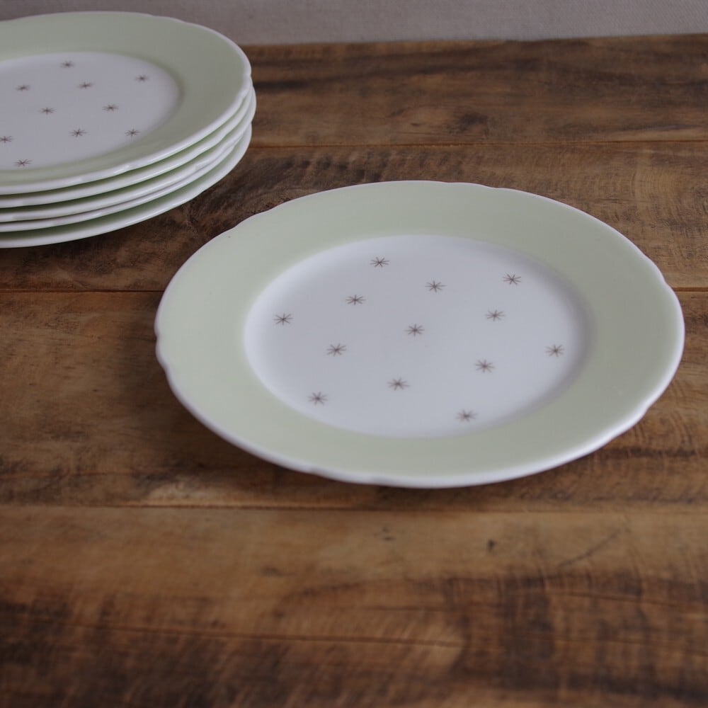 シェリー ポールスター デザートプレート ケーキ皿 15cm Shelley Pole Star #220204-1~6 イギリス ヴィンテージ 食器 陶器 レトロ 星 グリーン