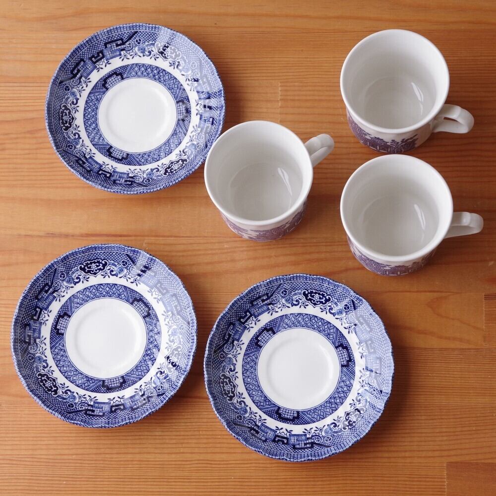 ロイヤルウェセックス ブルーウィロー コーヒーカップ ソーサー Royal Wessex #220219-1~3 イギリス Blue Willow レトロ ヴィンテージ 食器