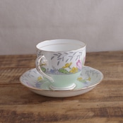 器の下部や、ソーサーの内側部分は、淡いグリーン色に塗られています。