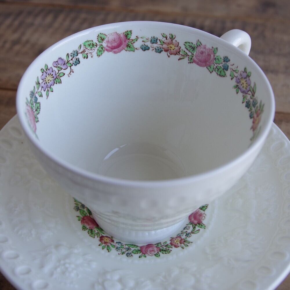 ウェッジウッド ウェルズリー バルモラル ティーカップ ソーサー 花柄 フルーツ柄 レリーフ ヴィンテージ 食器 #220308-1 Wedgwood Wellesley Balmoral 陶器 アンティーク