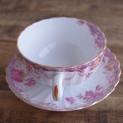 カップもソーサーも、ふちは直線的でなく、花のような形になっています。