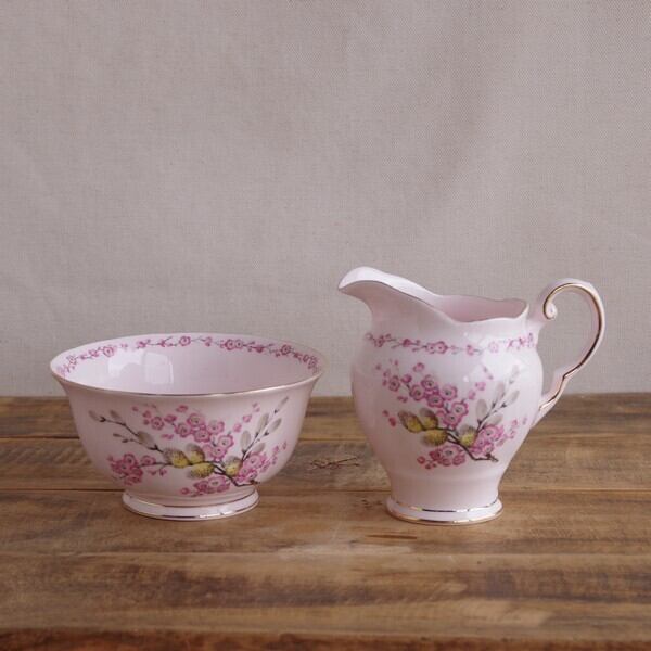 Royal Tuscan エイプリル・ビューティー ピンク 花柄 シュガーボウル クリーマー #220320 イギリス ヴィンテージ 食器 陶器 アンティーク 桜 ねこやなぎ