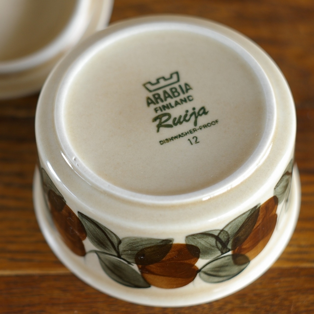 手描きの葉っぱや実の絵柄が描かれ、北欧食器のぬくもりを感じられます。