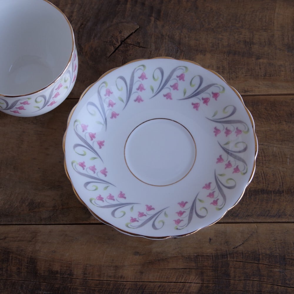 テイラー&ケント ピンク すずらん 花柄 コーヒーカップ ソーサー Taylor & Kent #220409-1,2 イギリス ヴィンテージ 食器 陶器 レトロ