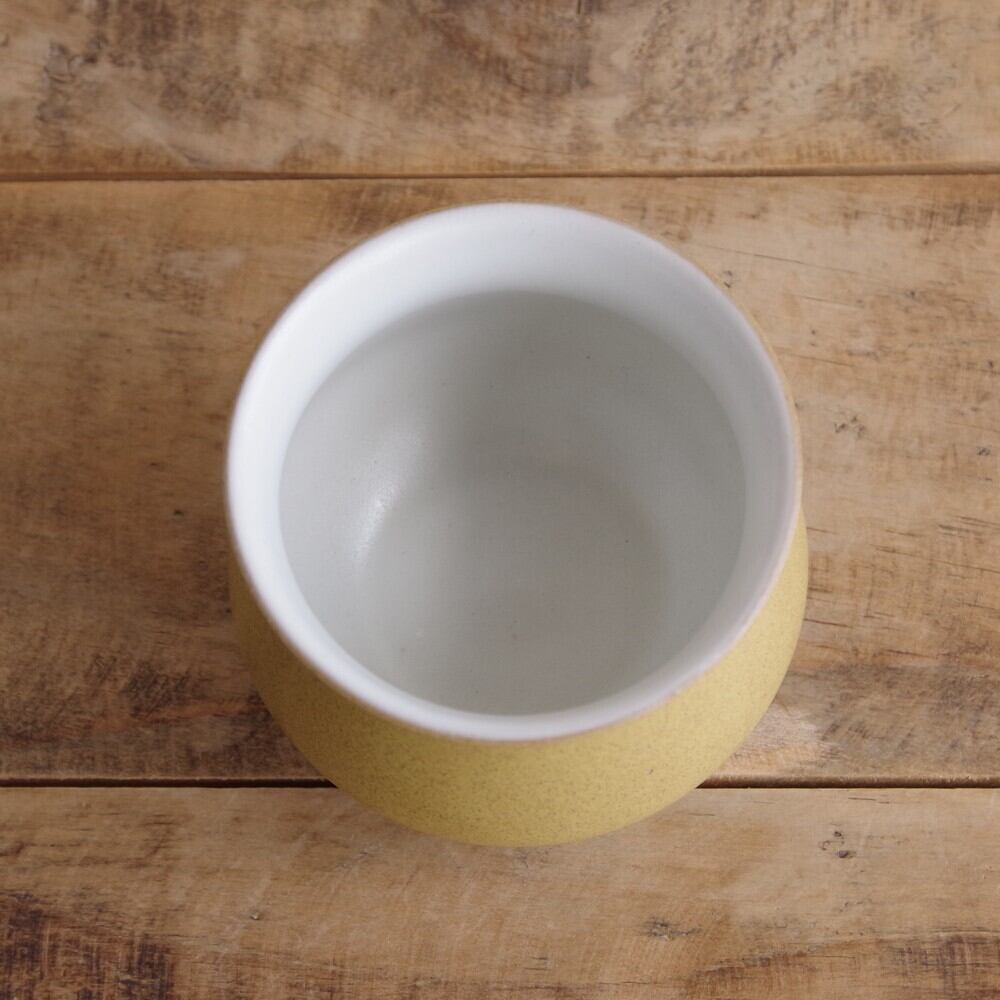 ぽってりとした形に、マットなからし色の釉薬がかかった
