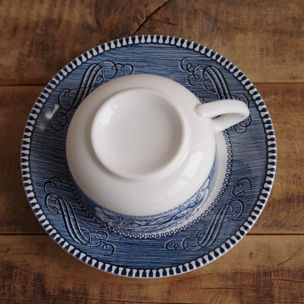 ロイヤルチャイナ アメリカ製 カリアー&アイブズ ブルー ティーカップ ソーサー #220526-4 Royal China Currier&Ives Blue