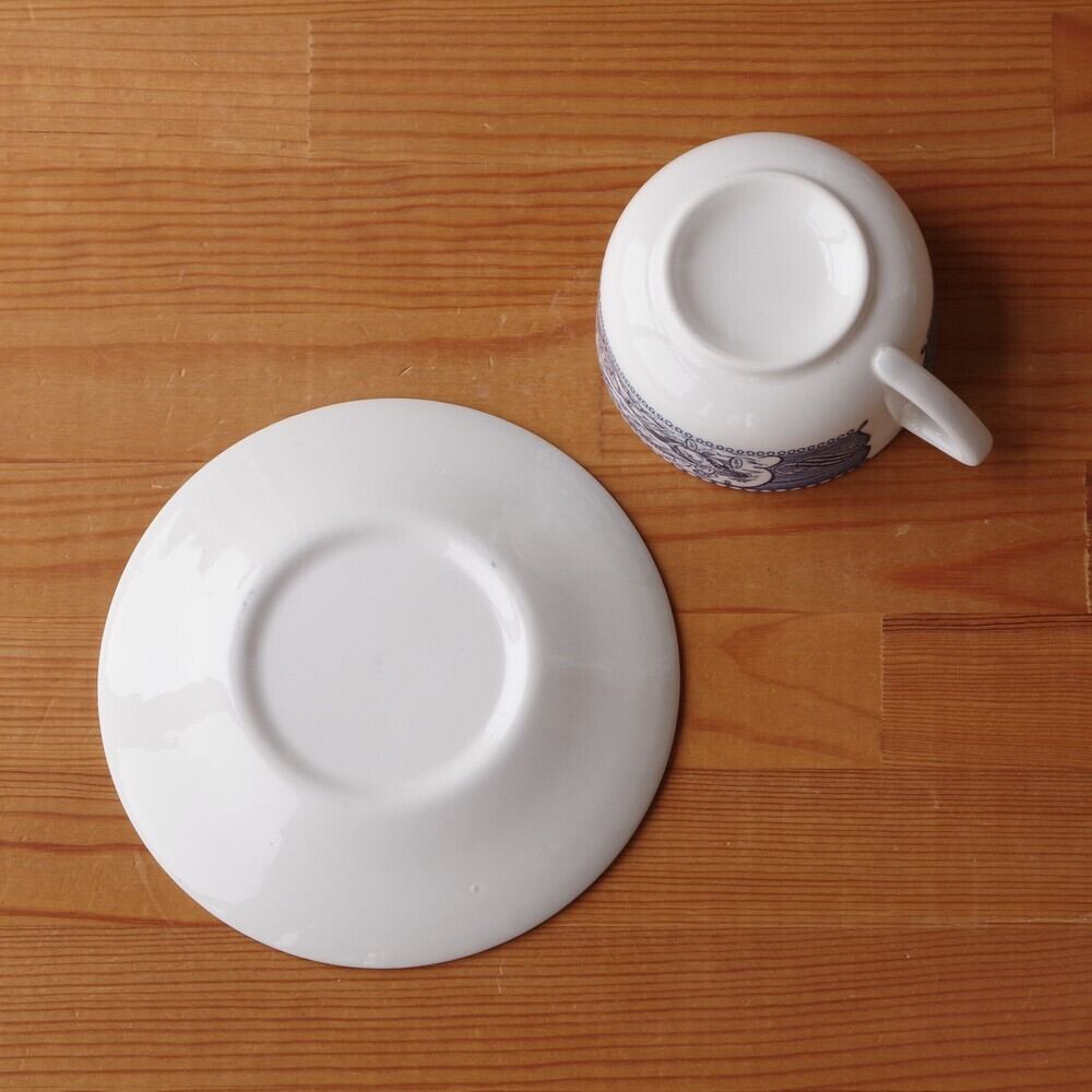 ソーサー中央には、蒸気を上げる船の絵柄が描かれています。