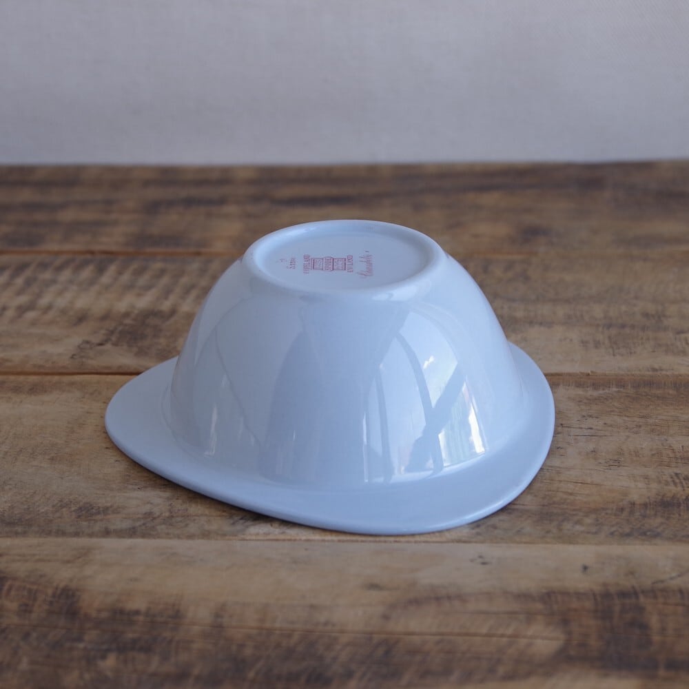 丸い器に、丸みのある三角形のリムがついており、