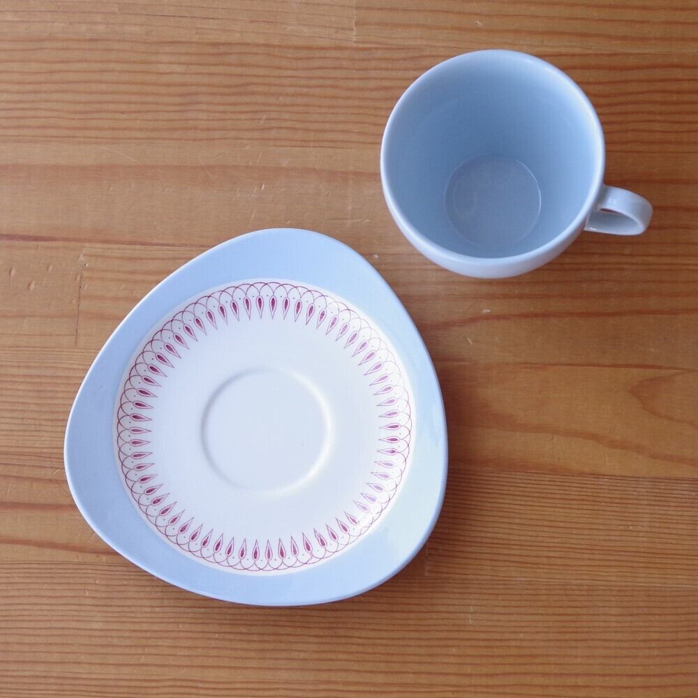 スポード シャンデリア コーヒーカップ ソーサー 三角形 ブルー 赤 イギリス ヴィンテージ 食器 #220527-4 陶器 Spode Chandelier レトロ