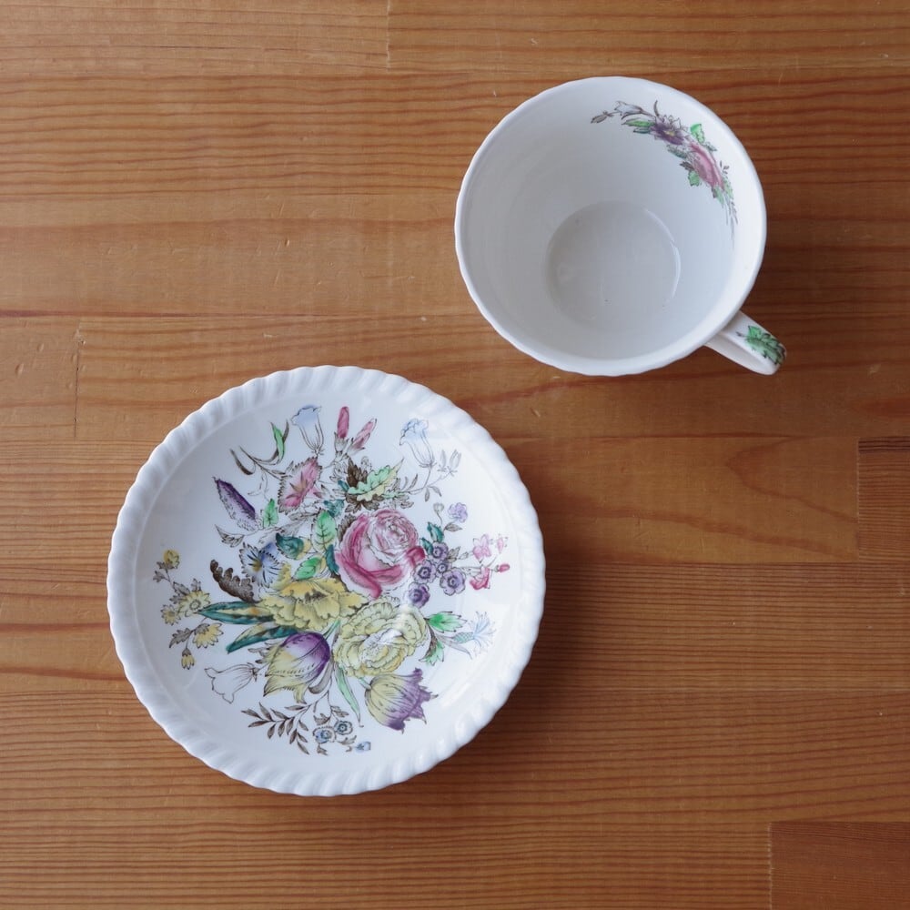 ジョンソンブラザーズ ガーデンブーケ ティーカップ ソーサー Johnson Brothers Garden Bouquet #220603-3 イギリス ヴィンテージ 食器 陶器 アンティーク レトロ 花柄