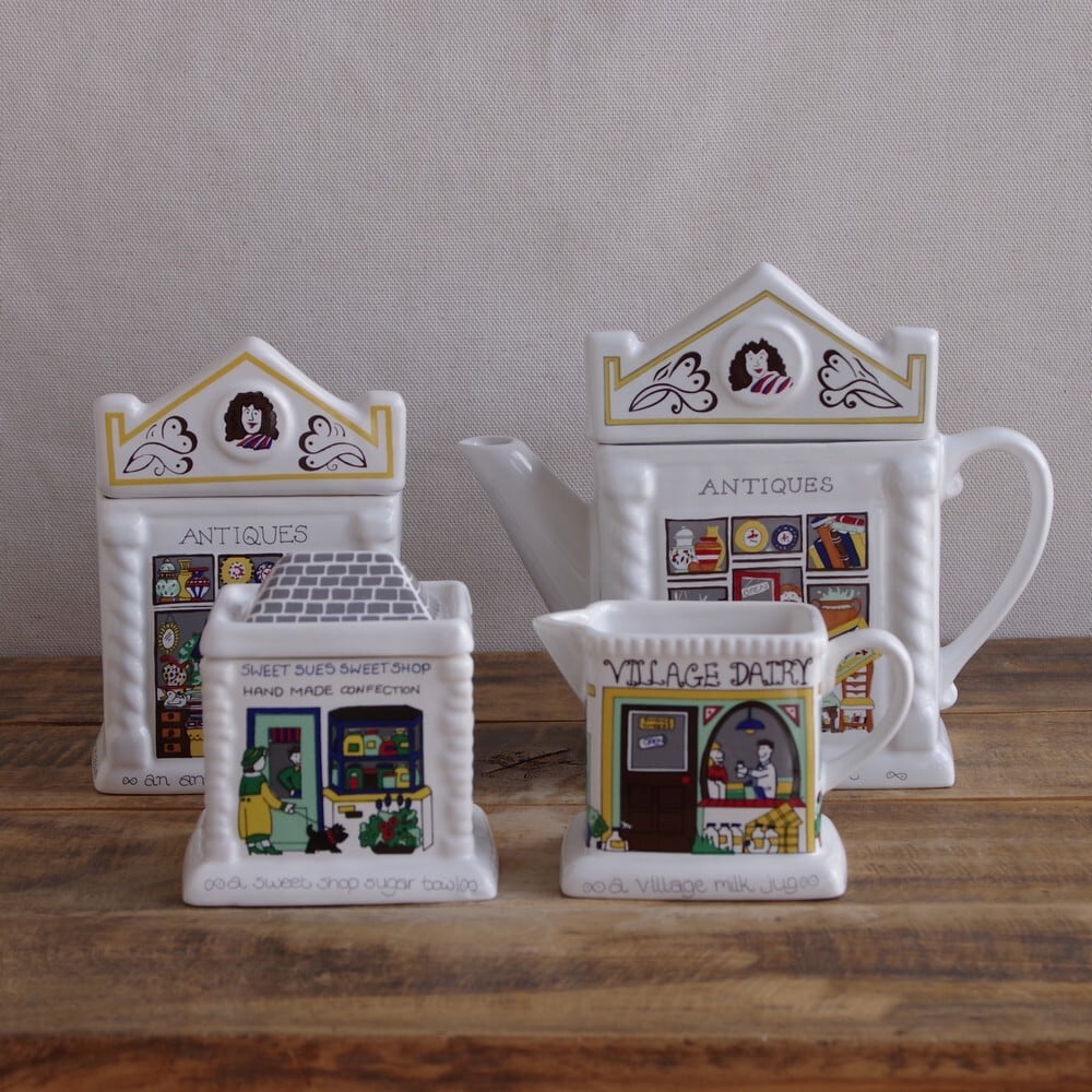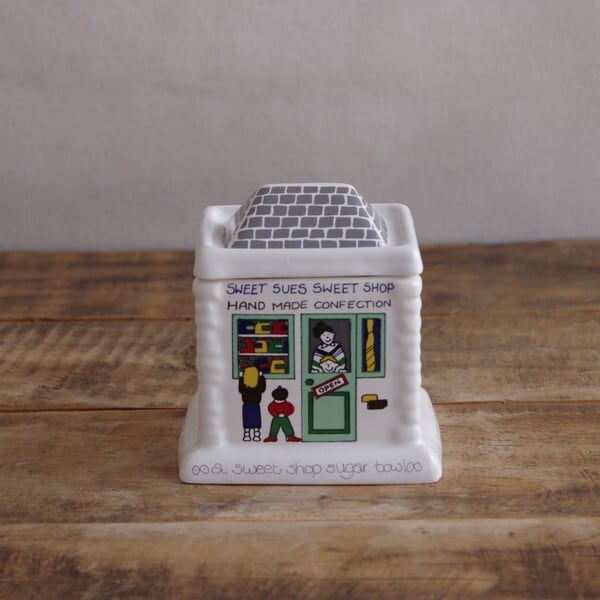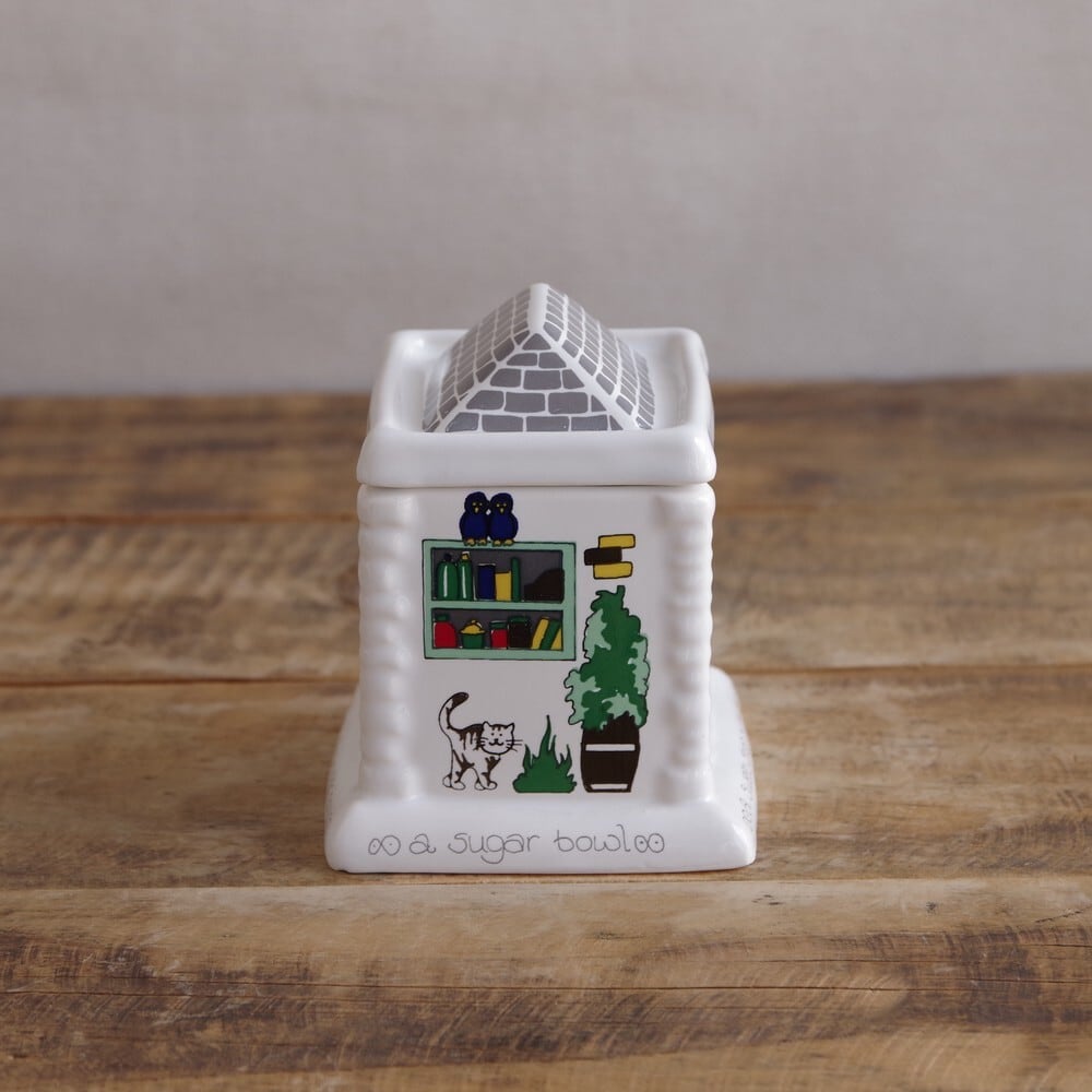 イギリス ヴィンテージ雑貨 WADE English Life ウェイド シュガーポット キャニスター 蓋物 家 ショップ #220603-4 レトロ お店 建物 屋根 キッチュ セラミック 陶器